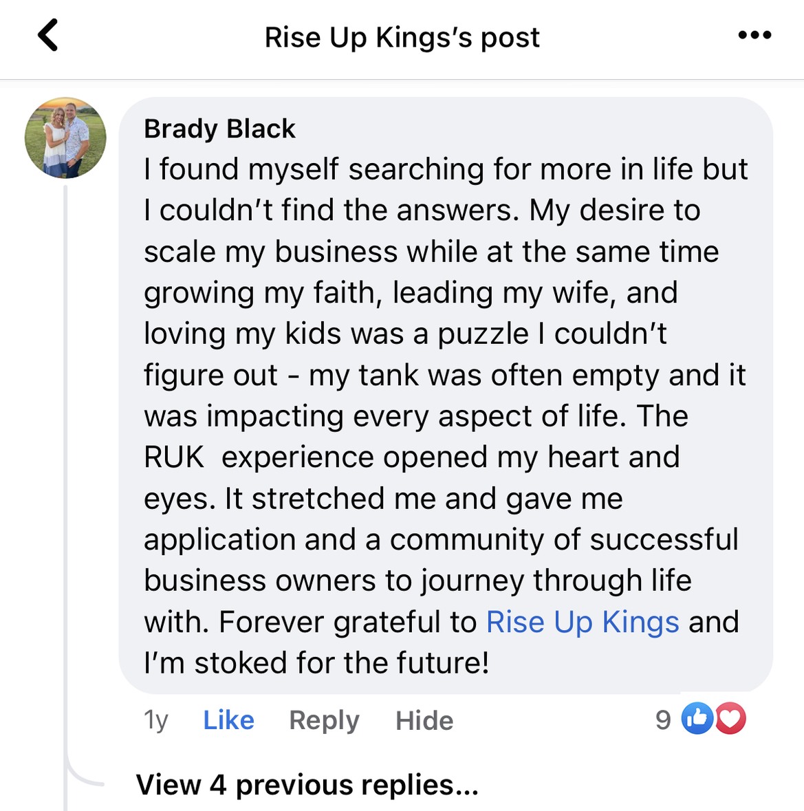 Most business owners feel like they are doing it on their own. So I've built a platform for business owners to be around other like-minded men who have the same aspirations and challenges. Having like-minded associations has proven to produce incredible results for the members. While this event focuses on business owners, we also have an event called the Awakening, tailored for non-business owners. Discover more at www.riseupkings.com/awakening.